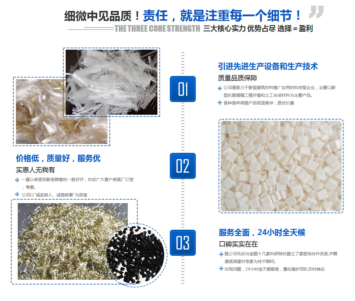 以新型抗裂增強(qiáng)工程纖維和土工合成材料為主要產(chǎn)品